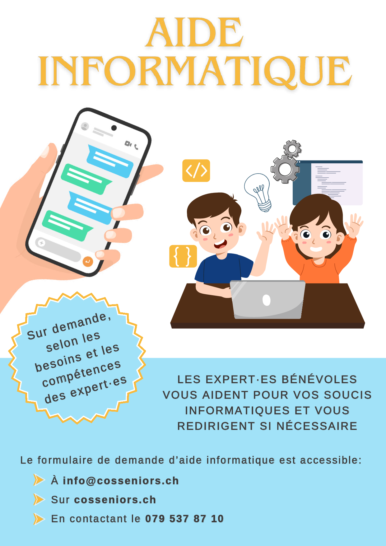 Les experts bénévoles vous aident pour vos soucis informatiques et vous redirigent si nécessaire. Faites nous part de votre besoin à l'aide du "Formulaire en ligne". Et si vous préférez une version papier à imprimer et nous retourner, vous pouvez la télécharger ici : "Formulaire à télécharger". Nous trouverons certainement quelqu'un·e pour vous donner un coup de main.