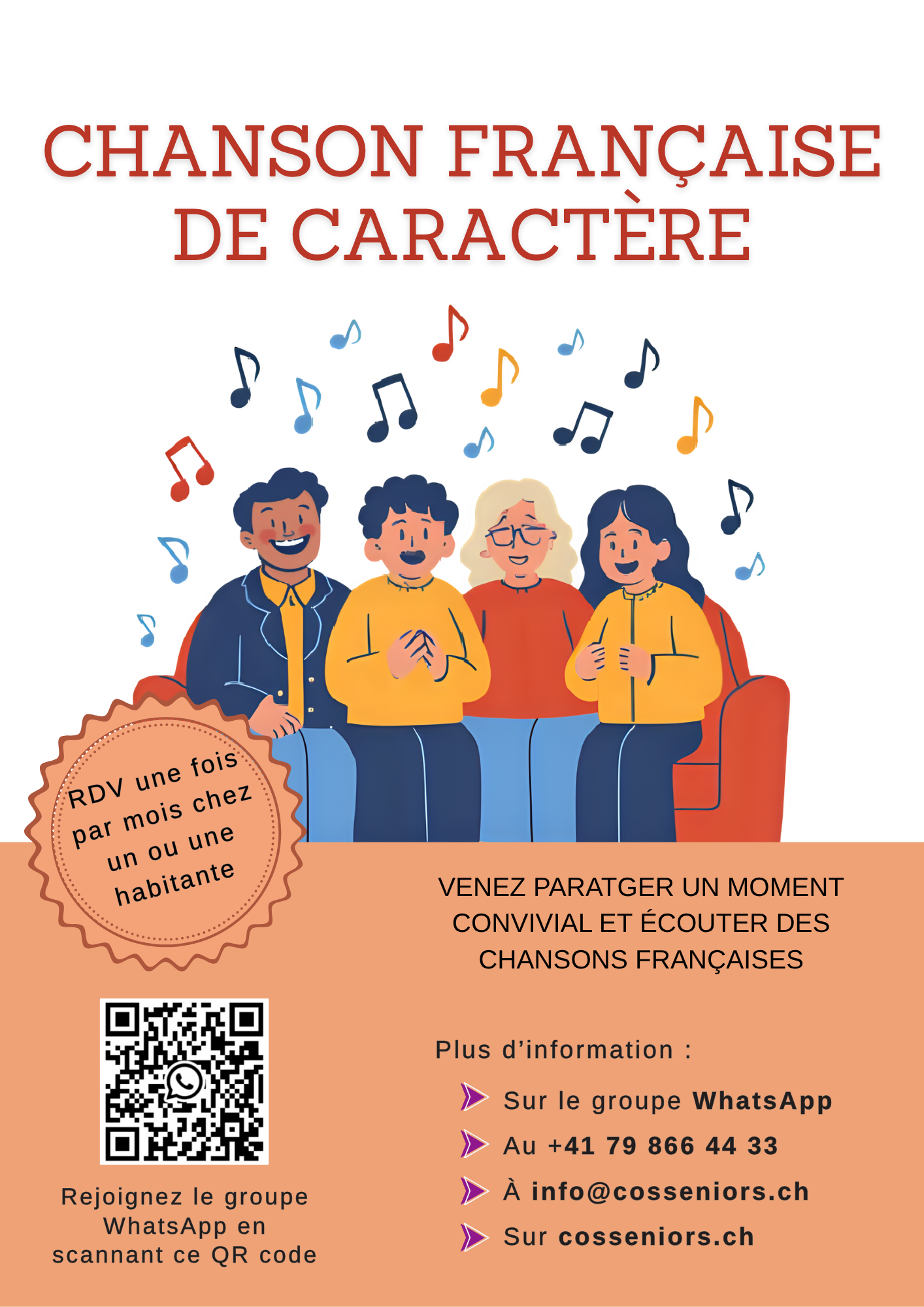 Partagez un moment convivial en écoutant des chansons françaises de caractère. Si vous appréciez les chansons "à texte", vous ferez de belles découvertes... et des contacts enrichissants.